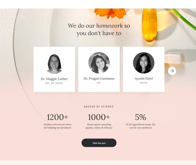 Honesty is the foundation of our recommendations. Our algorithm takes into account details about your personal health goals and lifestyle as well as clinical research – think thousands of studies – about the efficacy of different supplements. We recommend the products that will be most effective in supporting your unique health needs.